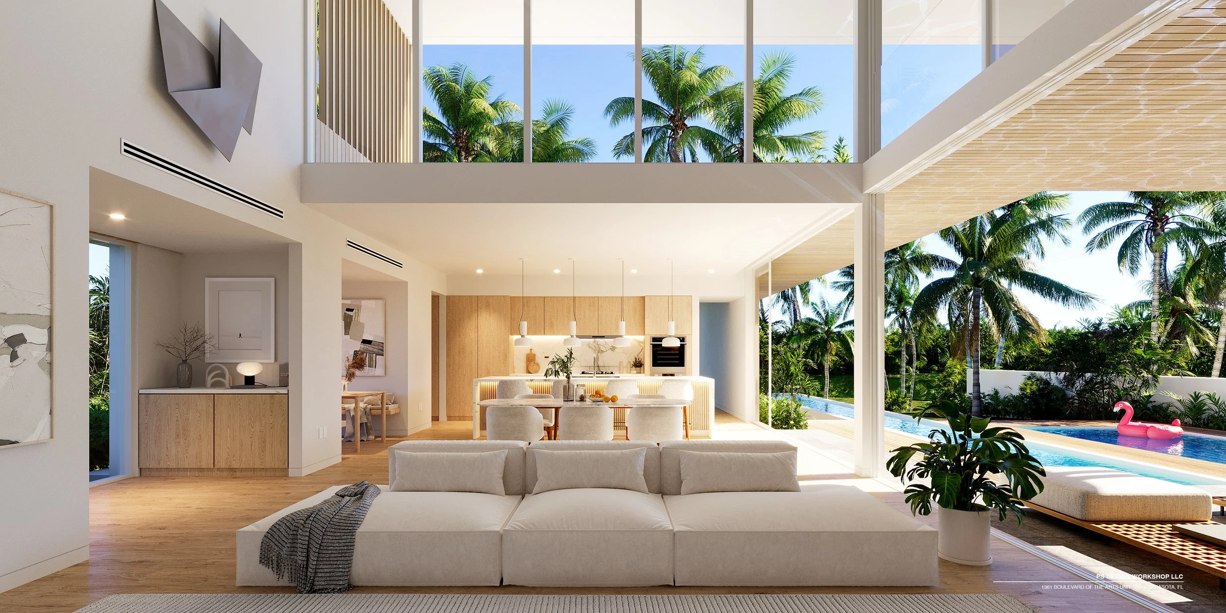 Nestled on the picturesque waterfront of Siesta Key, our new residence at 525 Treasure Boat Way stands as a testament to modern contemporary residential design, drawing inspiration from the iconic Sarasota School of Architecture. This stunning property reimagines the region's architectural heritage, creating a harmonious blend of indoor and outdoor spaces, utilizing long overhangs for natural shade, and offering a refreshing living experience for those who are fortunate to call it home.